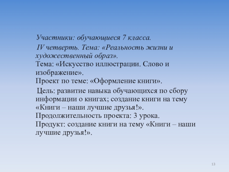 Тема: «Искусство иллюстрации. Слово и изображение».