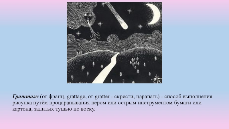 Слайд 10Граттаж (от франц. grattage, от gratter - скрести, царапать) - способ