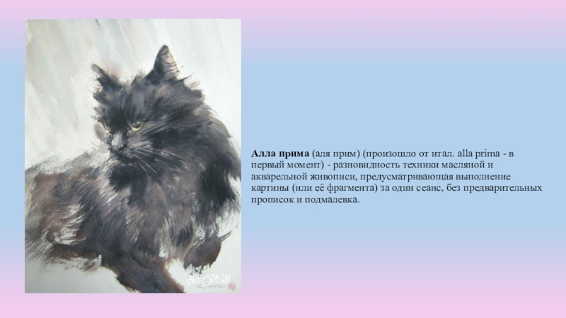 Слайд 3Алла прима (аля прим) (произошло от итал. alla prima - в первый