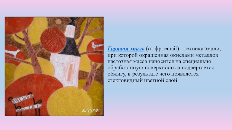 Слайд 8Горячая эмаль (от фр. email) - техника эмали, при которой окрашенная окислами