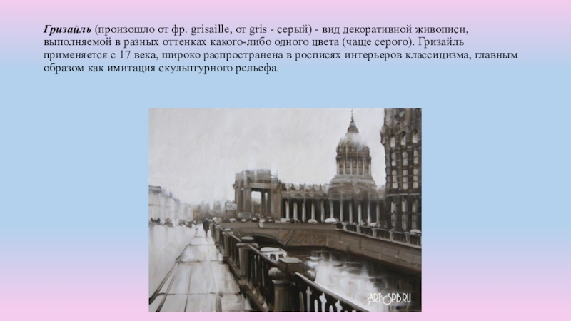 Слайд 11Гризайль (произошло от фр. grisaille, от gris - серый) - вид