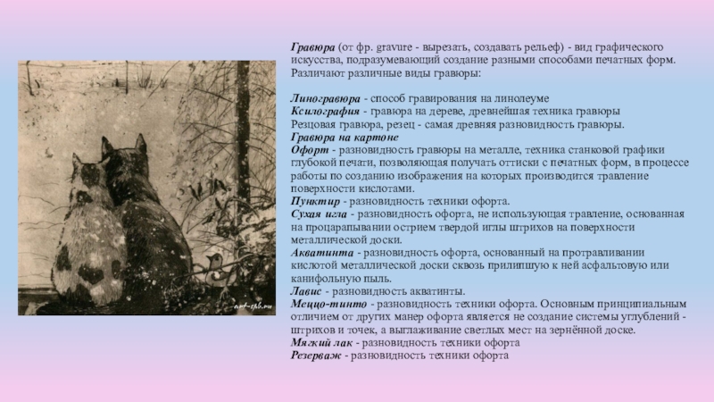 Слайд 9Гравюра (от фр. gravure - вырезать, создавать рельеф) - вид графического