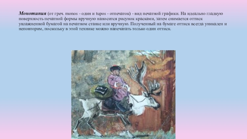 Слайд 16Монотипия (от греч. monos - один и tupos - отпечаток) -