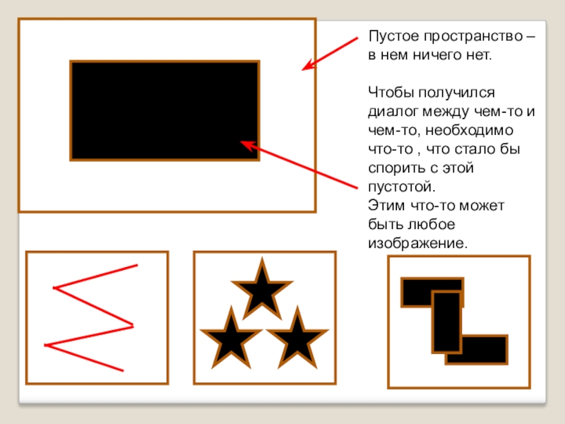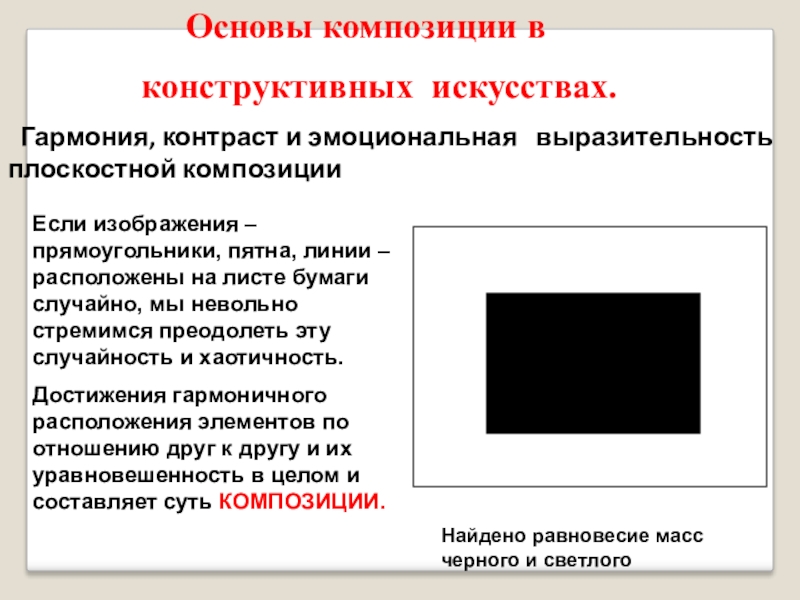 Если изображения – прямоугольники, пятна, линии – расположены на листе бумаги случайно, мы невольно стремимся преодолеть эту случайность и хаотичность.