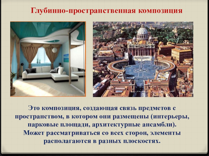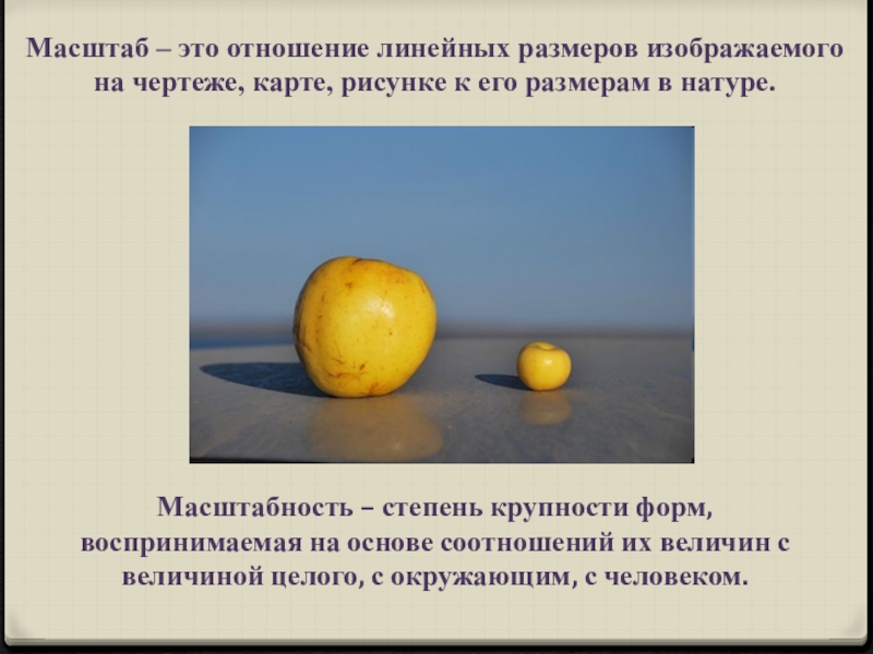 Масштабность – степень крупности форм, воспринимаемая на основе соотношений их величин с величиной целого, с окружающим, с человеком.