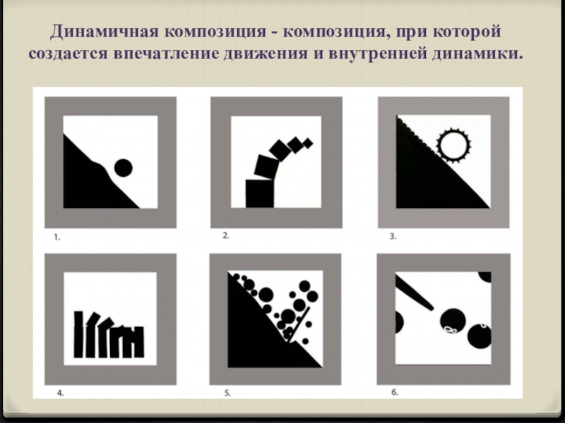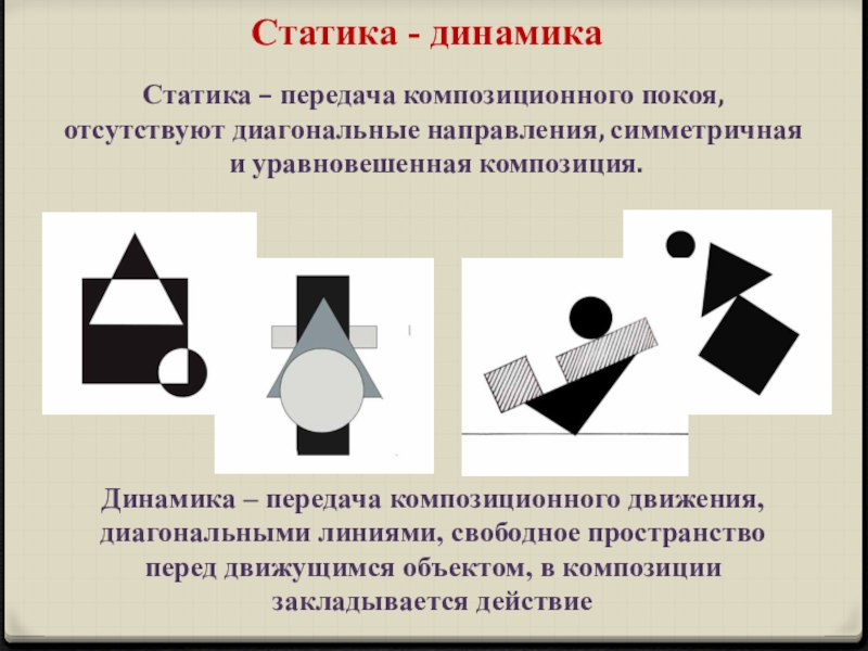 Динамика – передача композиционного движения, диагональными линиями, свободное пространство перед движущимся объектом, в композиции закладывается действие