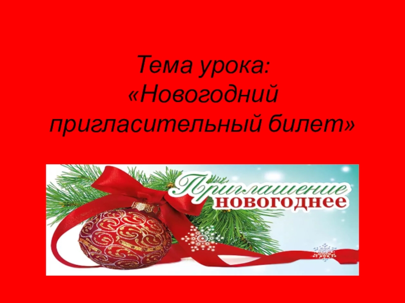 Слайд 1Тема урока: «Новогодний пригласительный билет»