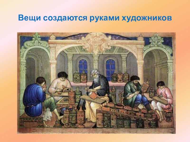 Слайд 7Вещи создаются руками художников