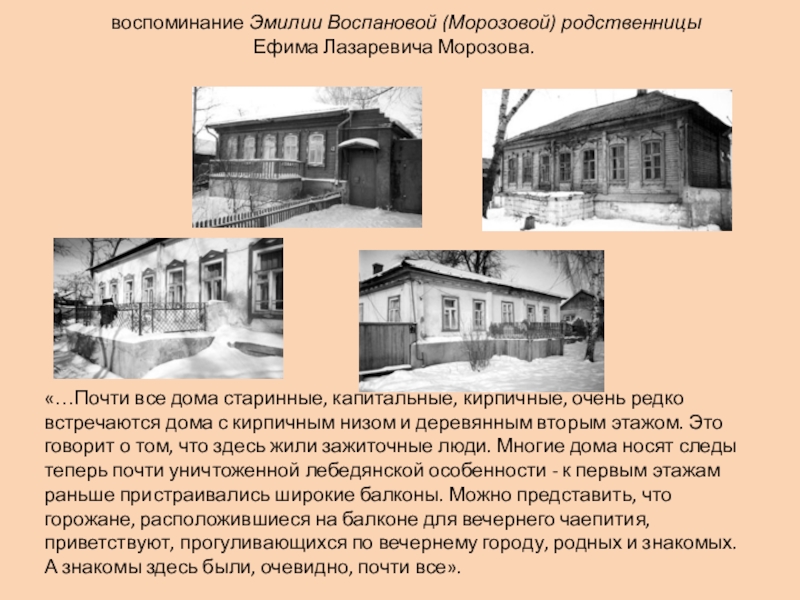 Слайд 16«…Почти все дома старинные, капитальные, кирпичные, очень редко встречаются дома с