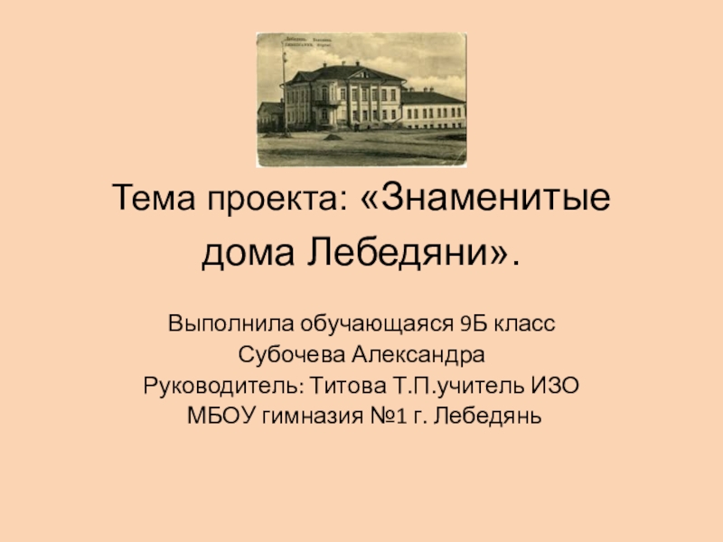 Слайд 1Тема проекта: «Знаменитые дома Лебедяни».