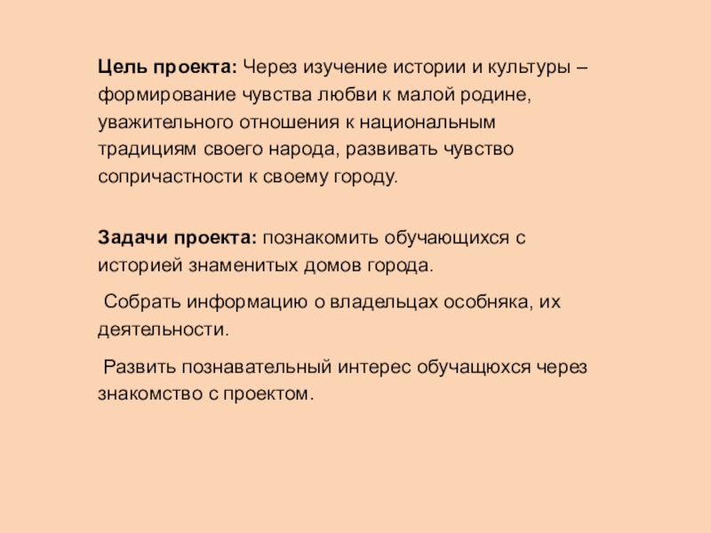 Задачи проекта: познакомить обучающихся с историей знаменитых домов города.
