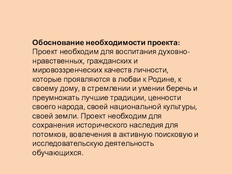 Проект необходим для воспитания духовно-нравственных, гражданских и мировоззренческих качеств