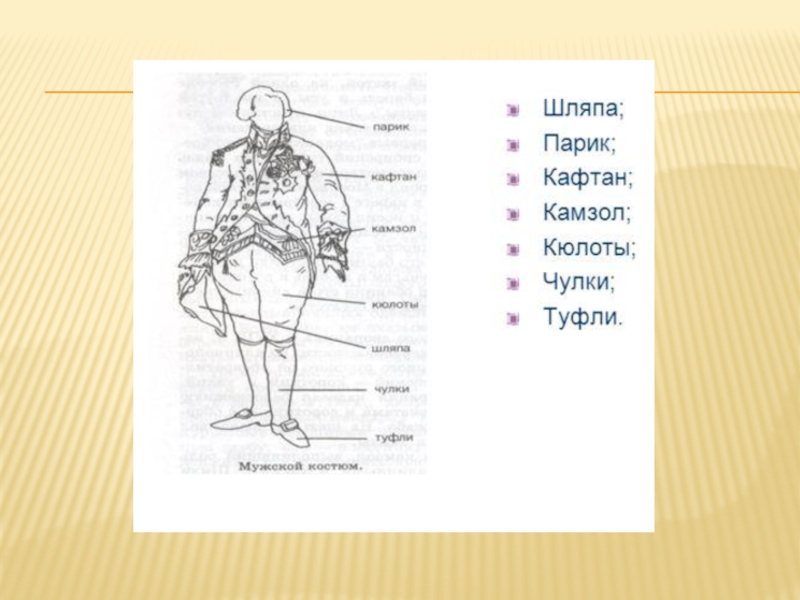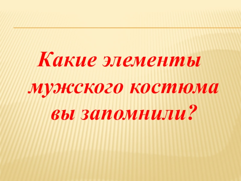 Слайд 7Какие элементы мужского костюма вы запомнили?