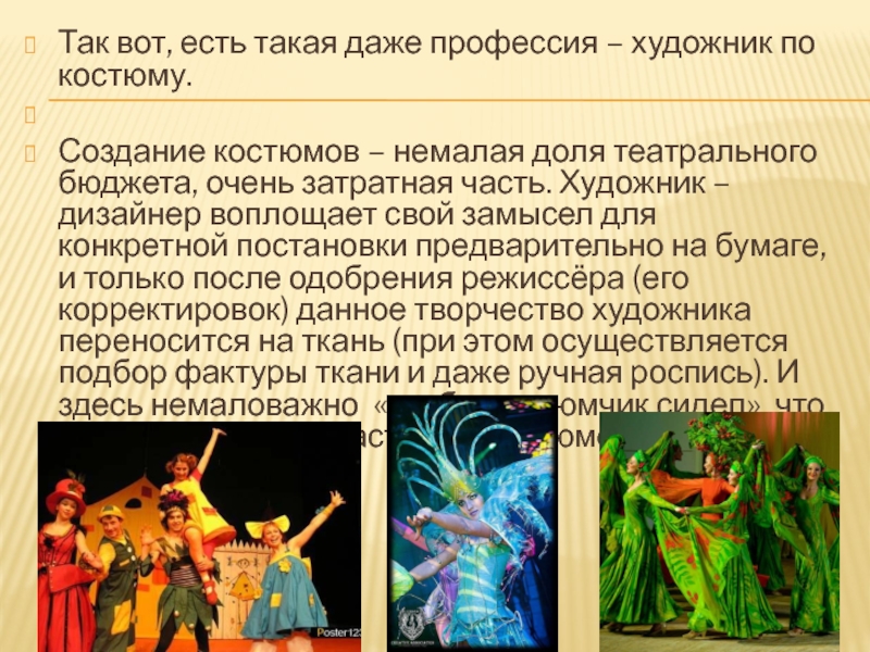 Слайд 9Так вот, есть такая даже профессия – художник по костюму.
