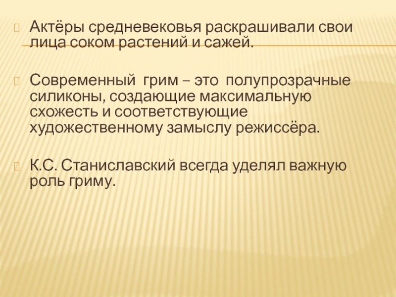 Слайд 14Актёры средневековья раскрашивали свои лица соком растений и сажей.