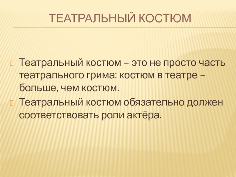 Театральный костюм обязательно должен соответствовать роли актёра.