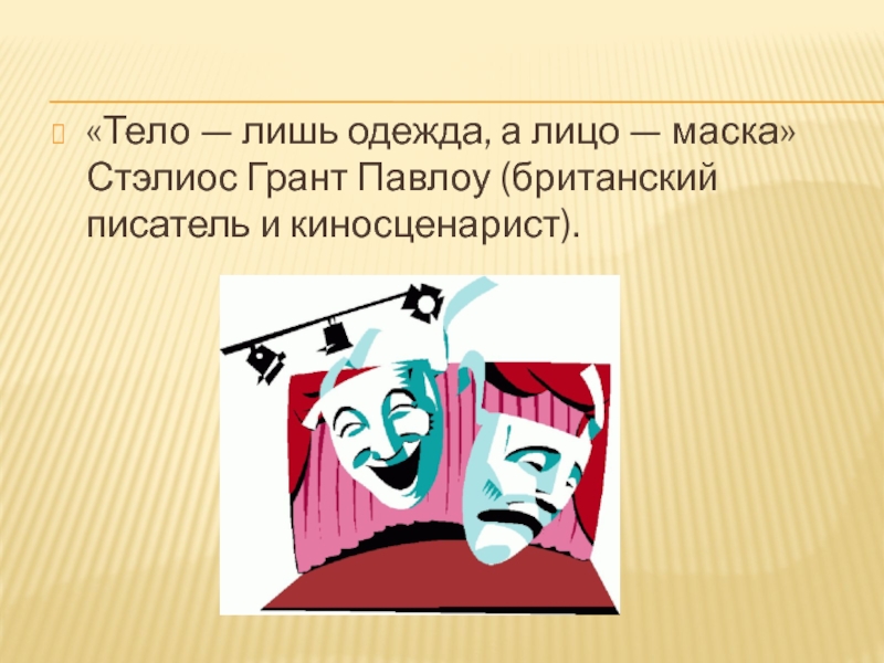 Слайд 3«Тело — лишь одежда, а лицо — маска» Стэлиос Грант Павлоу