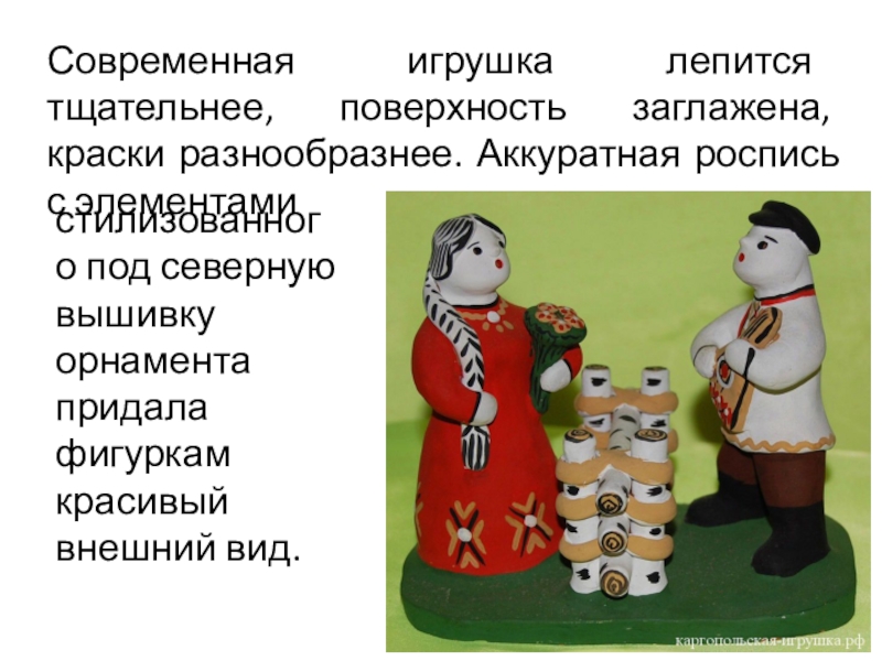 стилизованного под северную вышивку орнамента придала фигуркам красивый внешний вид.