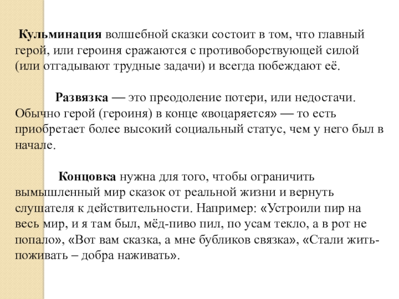 Слайд 23 Кульминация волшебной сказки состоит в том, что главный герой, или