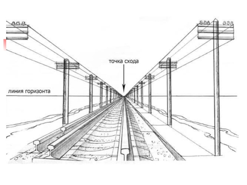 Все параллельные между собой линии,  уходящие в глубь пространства, воспринимаются глазами как сходящиеся в точке, которая
