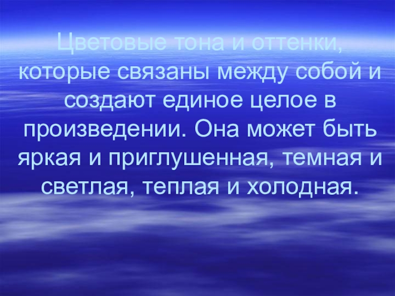 целое в произведении. Она может быть яркая и приглушенная, темная и светлая, теплая и холодная.