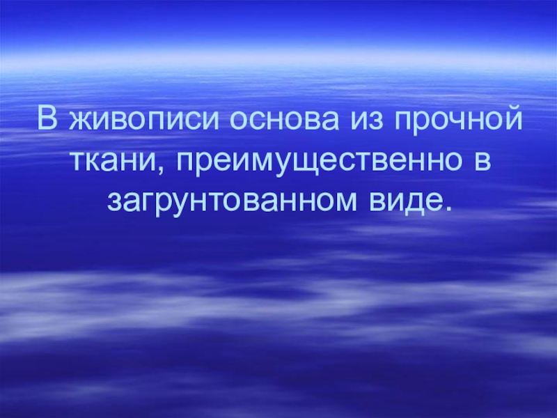 Слайд 18В живописи основа из прочной ткани, преимущественно в загрунтованном виде.