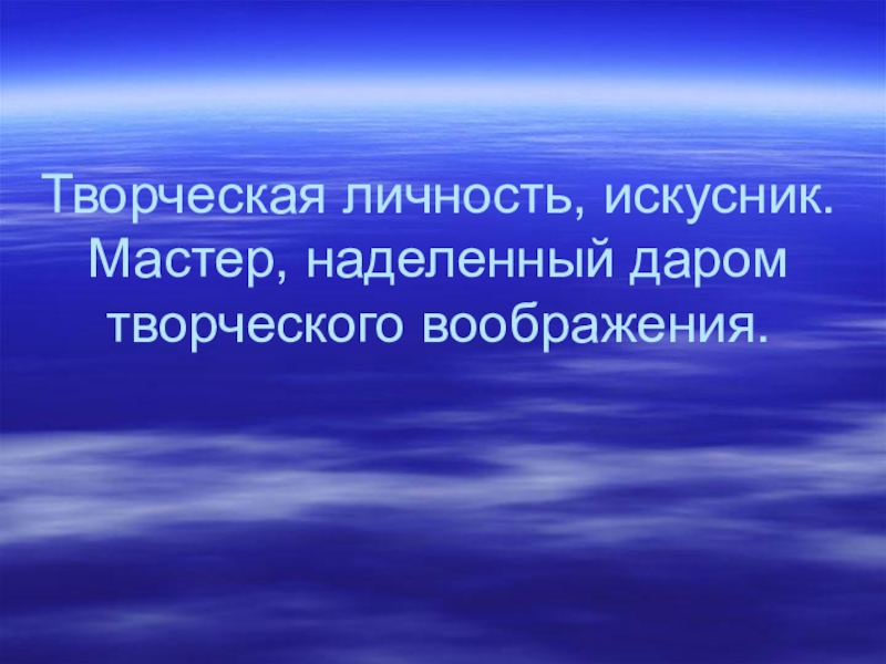 Слайд 10Творческая личность, искусник. Мастер, наделенный даром творческого воображения.