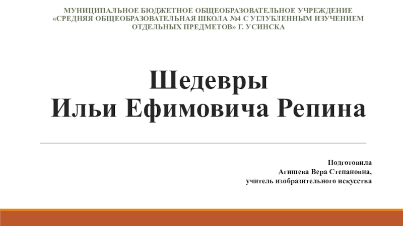 Муниципальное бюджетное общеобразовательное учреждение «Средняя общеобразовательная школа №4 с углубленным изучением отдельных предметов» г. Усинска