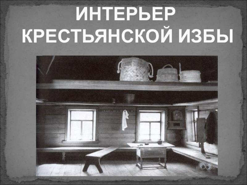Слайд 1 ИНТЕРЬЕР КРЕСТЬЯНСКОЙ ИЗБЫ