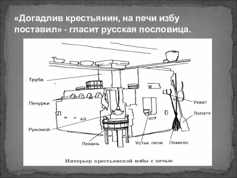 Слайд 4«Догадлив крестьянин, на печи избу поставил» - гласит русская пословица.