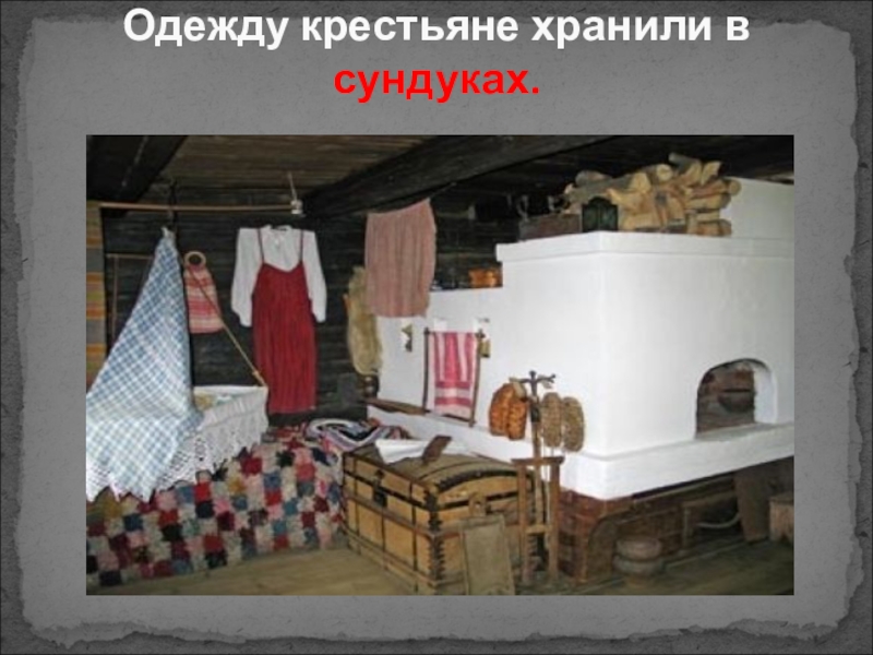 Слайд 16Одежду крестьяне хранили в сундуках.