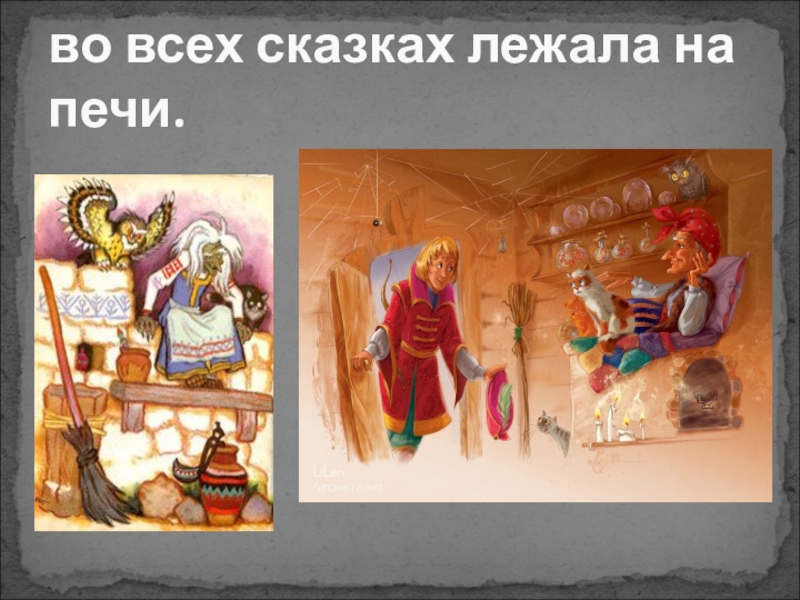 Слайд 7Баба Яга во всех сказках лежала на печи.