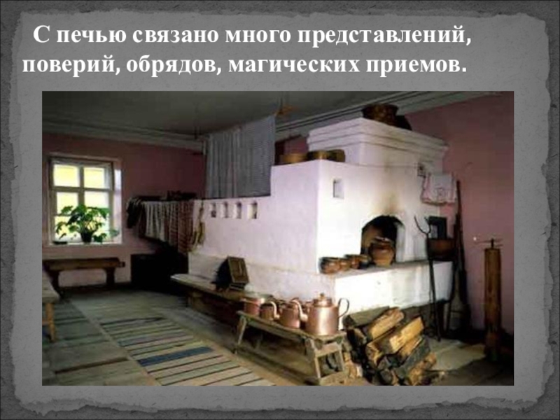 Слайд 8 С печью связано много представлений, поверий, обрядов, магических