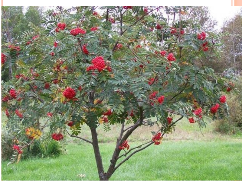 Слайд 4 Больше двух месяцев благоухает цветами рябина. Когда она цветёт, то