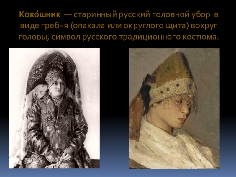 Слайд 3Коко́шник  — старинный русский головной убор в виде гребня (опахала или