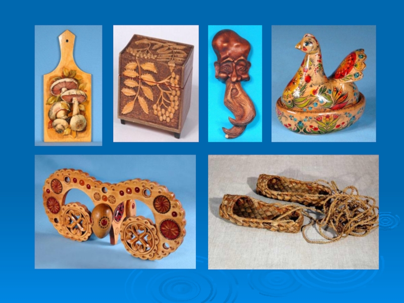 -- настоящий чудо-материал. Из гибких, очищенных прутьев ивы мастера плетут корзины, вазы, сухарницы, различные комплекты дачной мебели, панно и многое другое. Изделия из соснового корня необычайно красивы и долговечны - эксклюзивные сумочки, короба, шкатулки, игрушки.