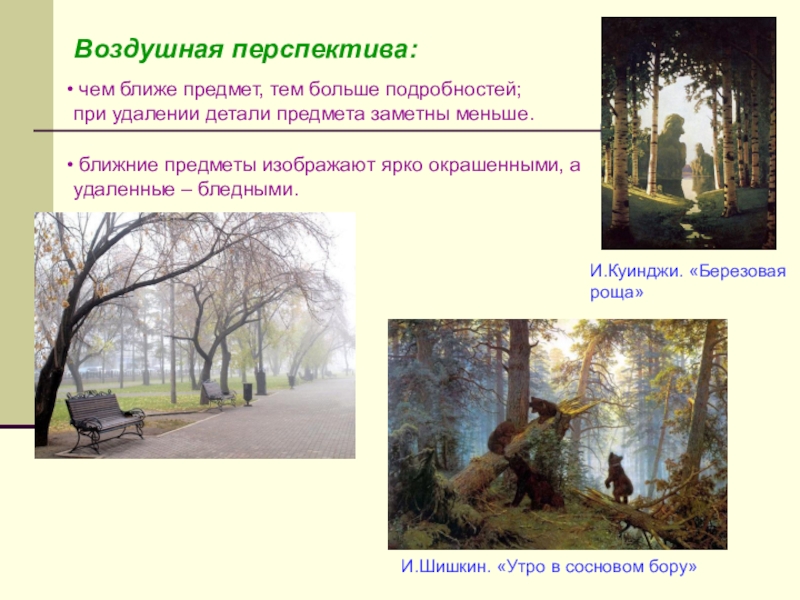 ближние предметы изображают ярко окрашенными, а удаленные – бледными.