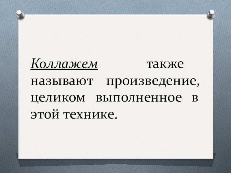 Слайд 24Коллажем также называют произведение, целиком выполненное в этой технике.