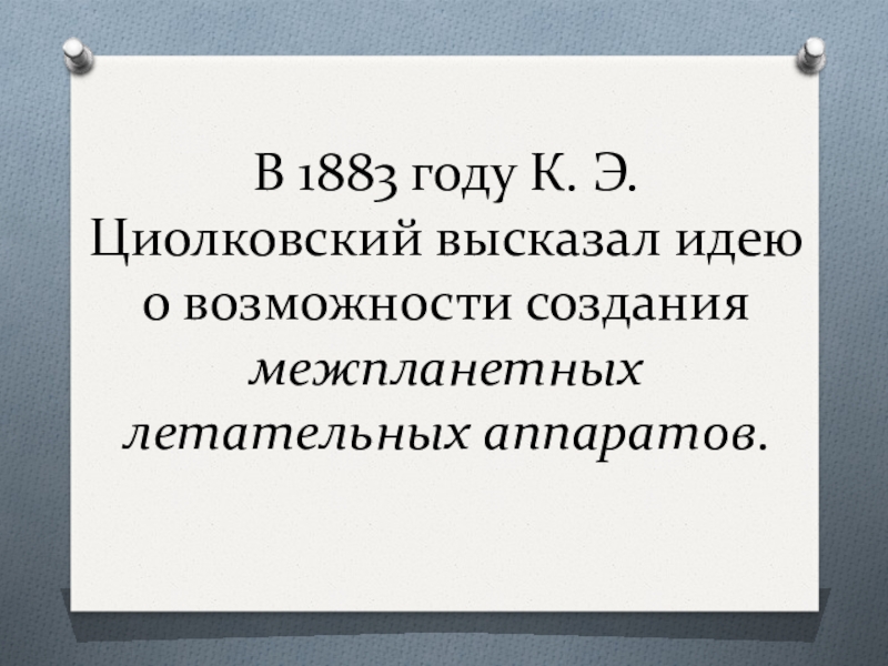 Слайд 11В 1883 году К. Э. Циолковский высказал идею о возможности создания