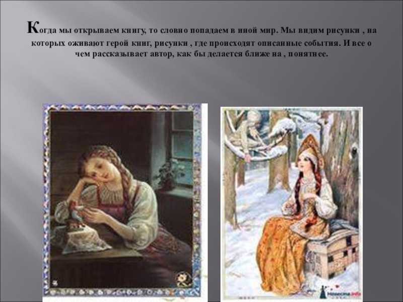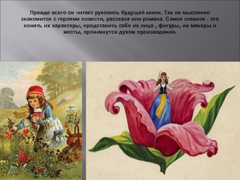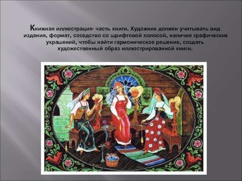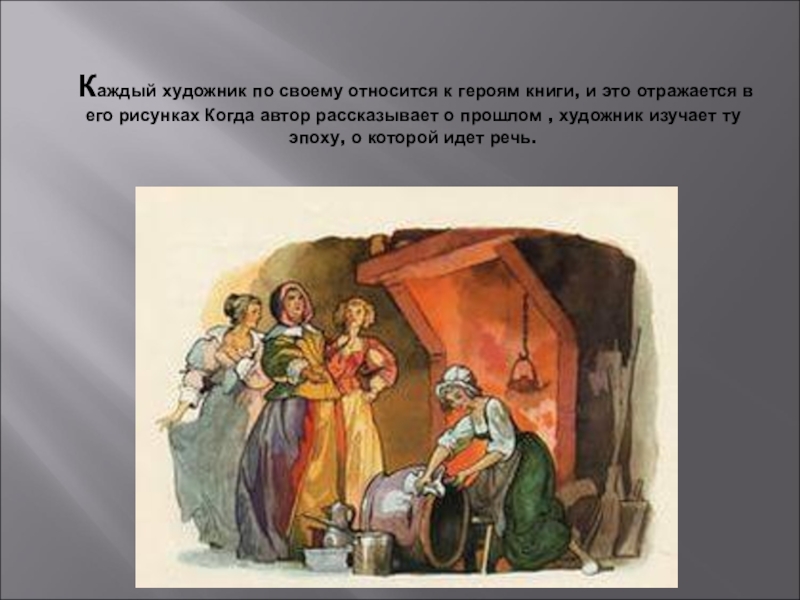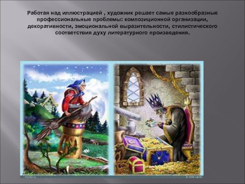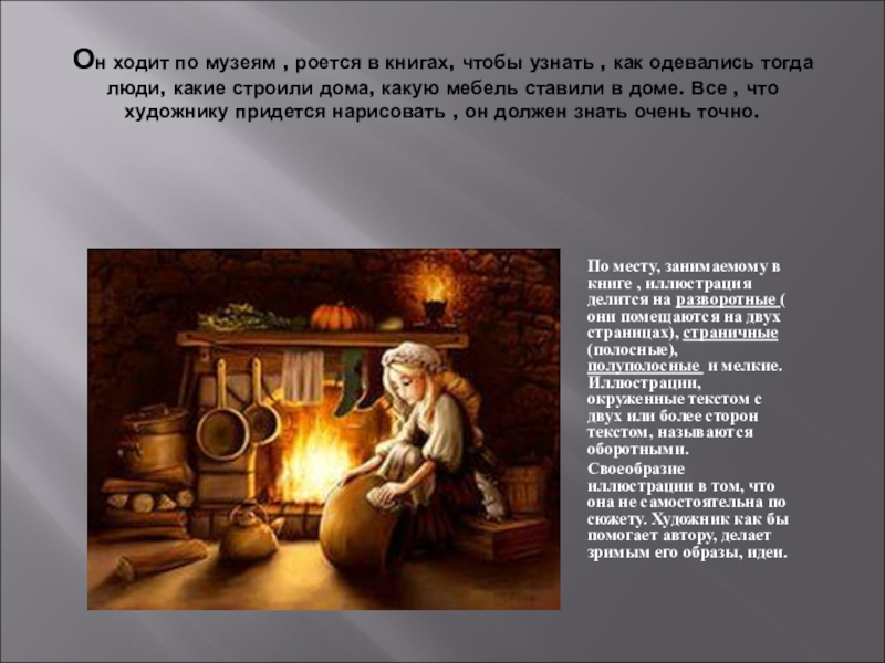 Своеобразие иллюстрации в том, что она не самостоятельна по сюжету. Художник как бы помогает автору, делает зримым его образы, идеи.