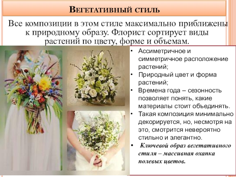 Ключевой образ вегетативного стиля – массивная охапка полевых цветов.