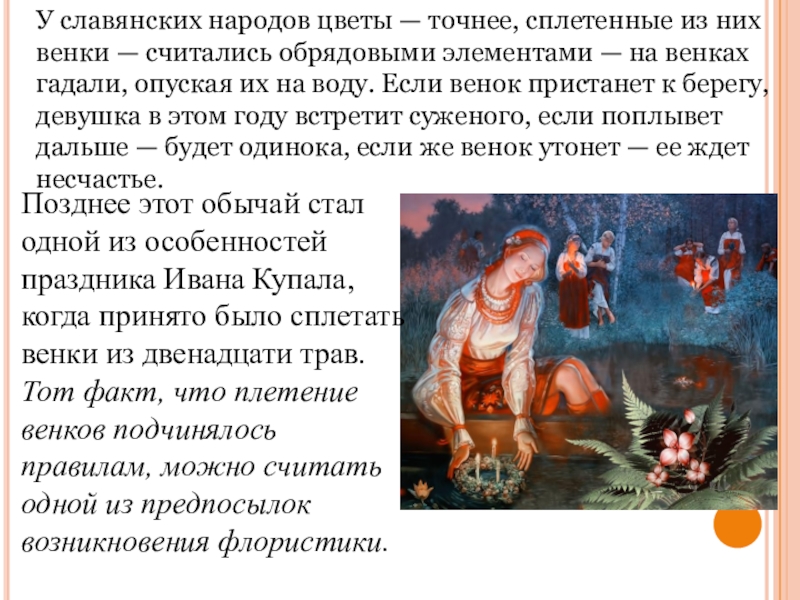 Тот факт, что плетение венков подчинялось правилам, можно считать одной из предпосылок возникновения флористики.