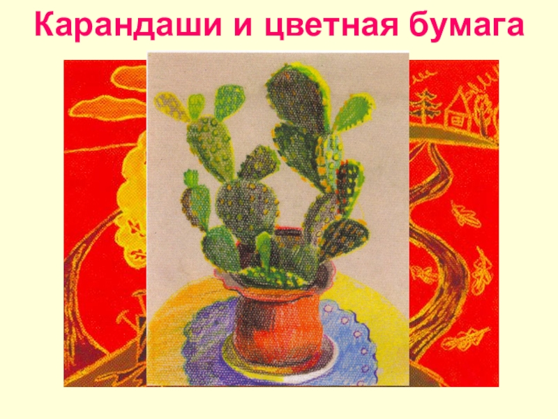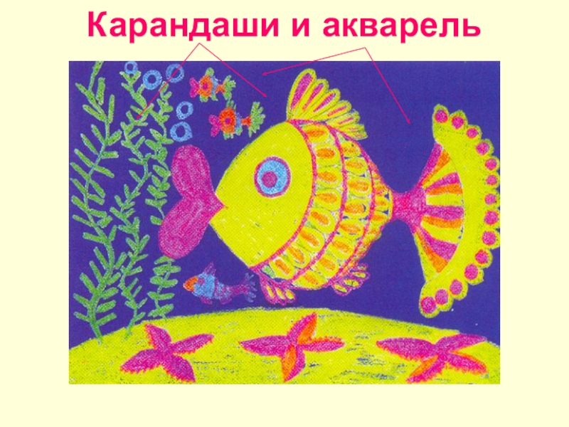 Приемы работы  восковыми, масляными, перламутровыми  и флуоресцентными  карандашамиКарандаши и акварельРисуем на цветной бумагеРисуем с