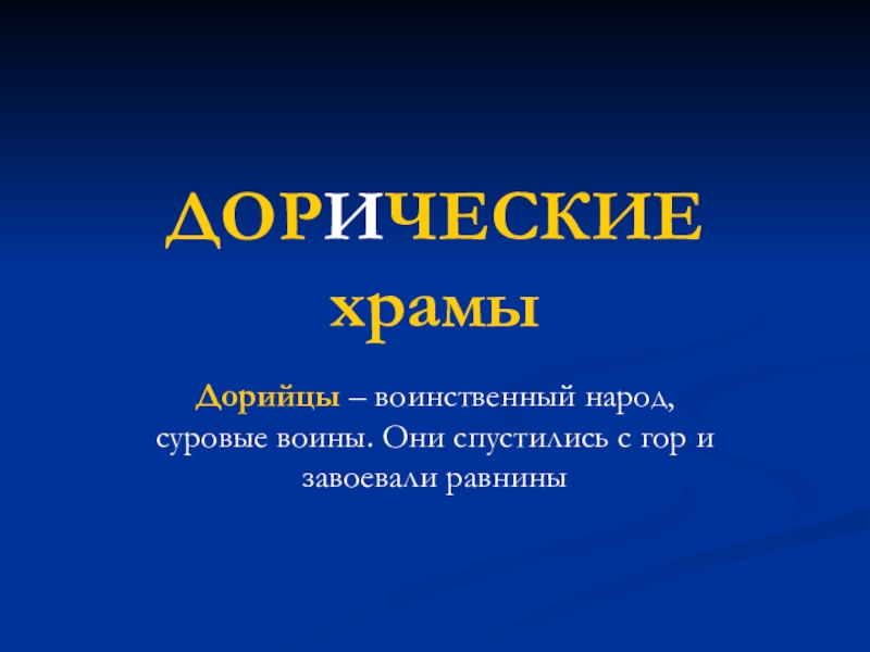 ДОРИЧЕСКИЕ храмыДорийцы – воинственный народ, суровые воины. Они спустились с гор и завоевали равнины