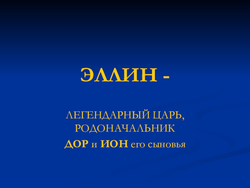 ЭЛЛИН -ЛЕГЕНДАРНЫЙ ЦАРЬ, РОДОНАЧАЛЬНИКДОР и ИОН его сыновья