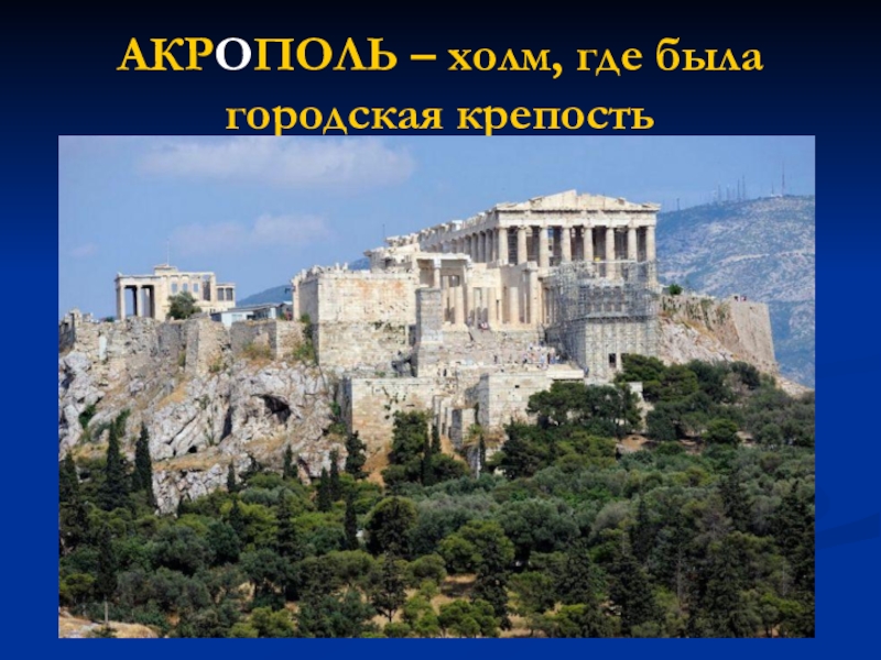 Слайд 11АКРОПОЛЬ – холм, где была городская крепость