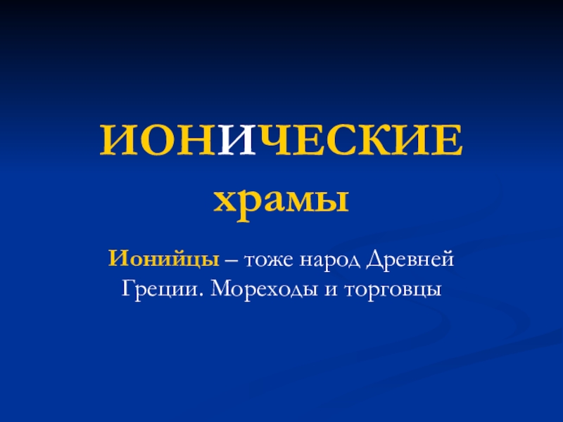ИОНИЧЕСКИЕ храмыИонийцы – тоже народ Древней Греции. Мореходы и торговцы