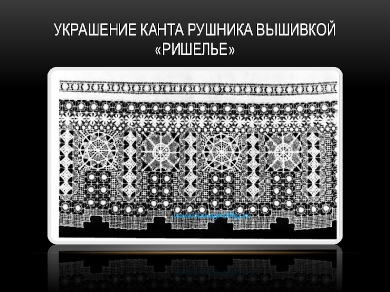 Слайд 17Украшение канта рушника вышивкой «ришелье»