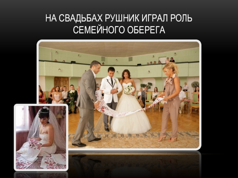 Слайд 12На свадьбах рушник играл роль семейного оберега