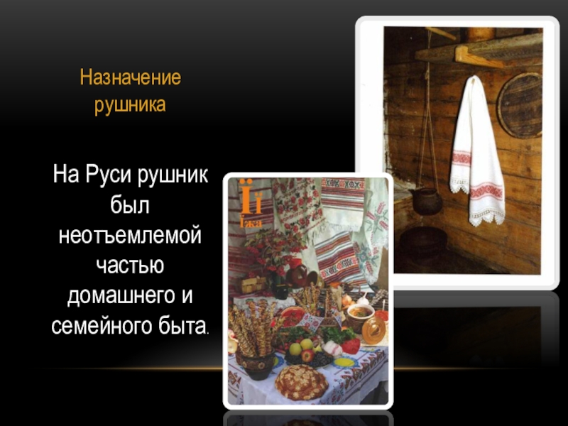 Назначение рушникаНа Руси рушник был неотъемлемой частью домашнего и семейного быта.